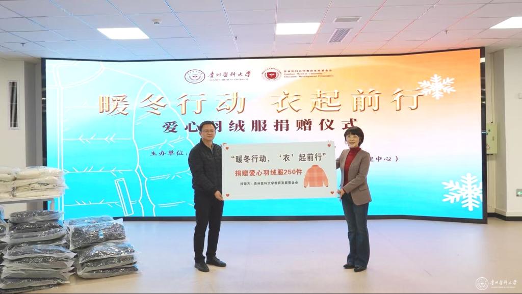 冬日渐寒,人心向暖。12月10日,学校举行“暖冬行动‘衣’起前行”爱心羽绒服捐赠仪式。本次活动由贵州医科大学教育发展基金会与党委学生工作部联合发起,校党委副书记于浩,党委学生工作部、教育发展基金会及项目支持方相关负责人共同参加本次活动,为250名学子送去冬日的关怀与暖意。校教育发展基金会秘书长彭云主持。